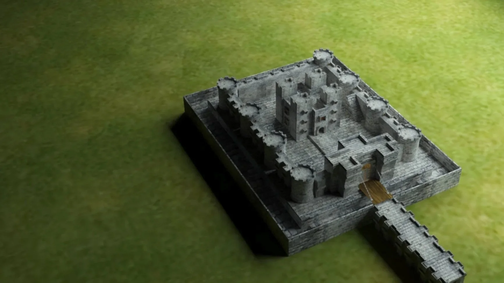 A detailed 3D castle model, emphasising architectural structure, scale, and an old-world aesthetic inspired by ancient fortifications.